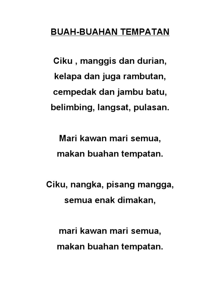 Lagu Buah Buahan Tempatan By Ra_Angelina395 18 Apr, 2022 Post a Comment Pendidikan Muzik Tahun 6 Audio Dan Lirik Lagu Buah Tempatan Youtube Muzik Tahun 6 Nyanyian Pic Lagu Buah Tempatan Youtube Lirik Lagu Buah Buahan Tempatan Pdf Lagu Kanak Kanak Lagu Buah Buahan Tempatan 太阳和公鸡 Youtube Share No comments for "Lagu Buah Buahan Tempatan"